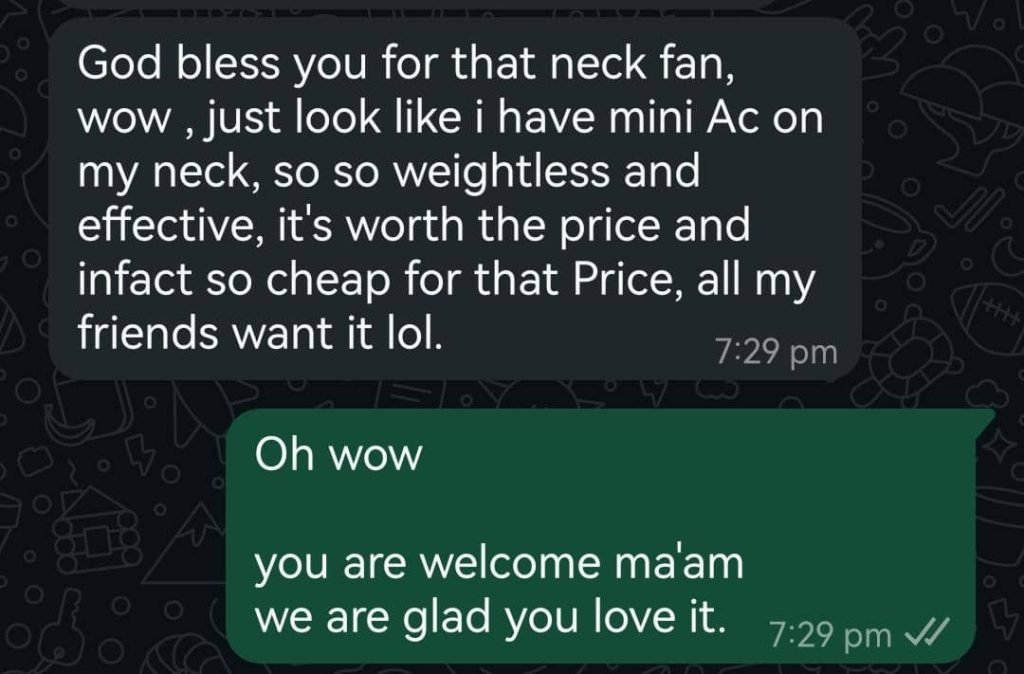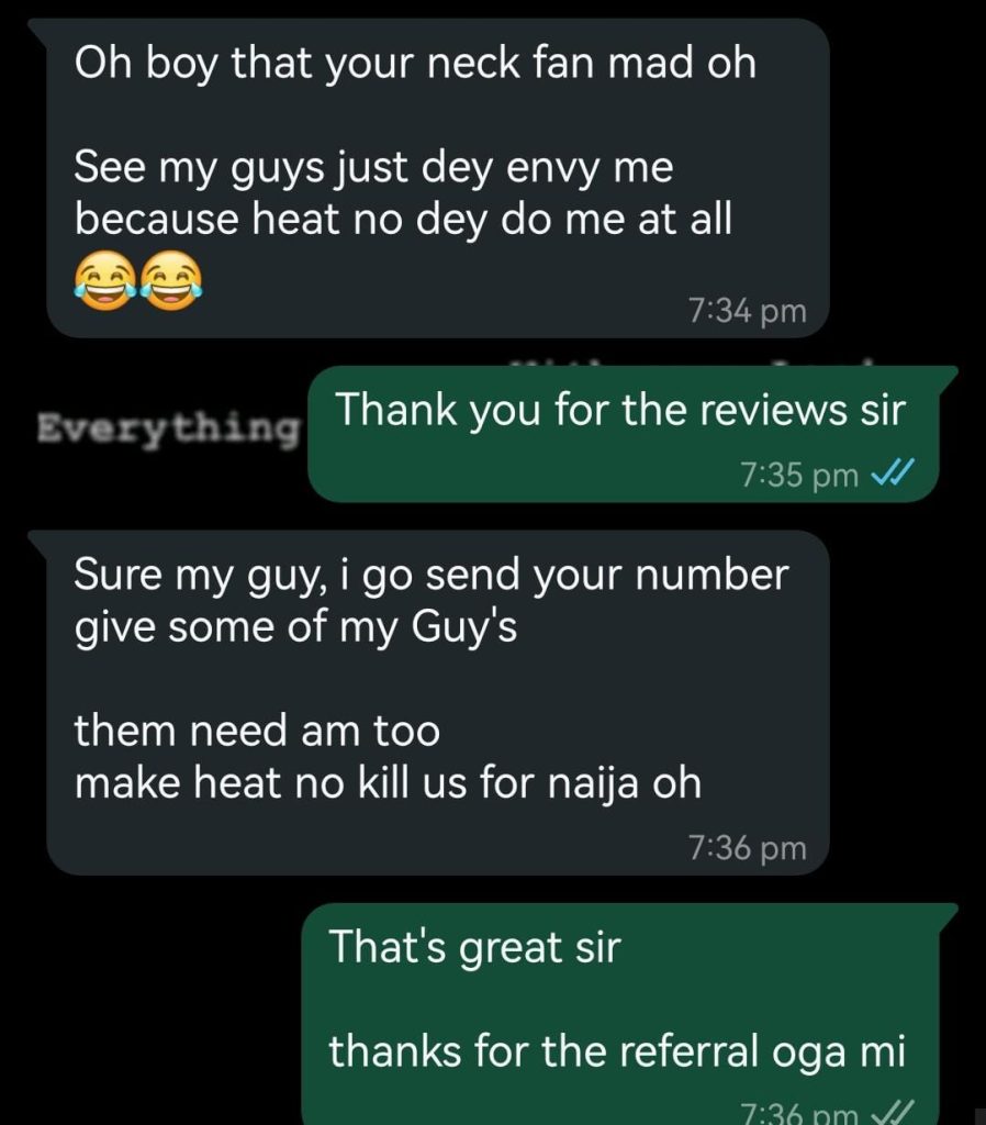Join the countless Nigerians who have experienced the Luxury of NECK FAN.