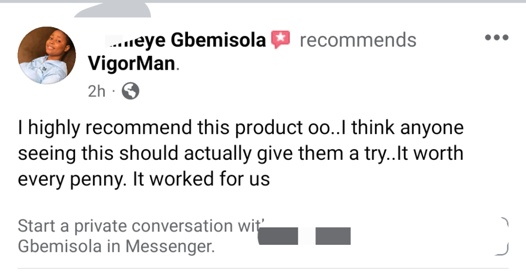 My husband who was even ashamed of talking to me his wife about the problem has now recommended the solution to some of his friends…