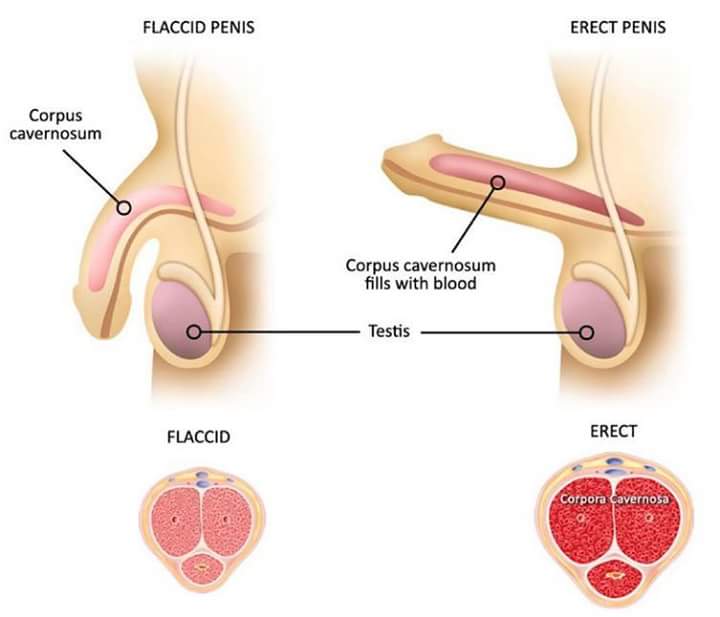 During an erection, the tissues in your penis fills with blood. The more blood these tissues hold, the bigger and harder your penis becomes.
